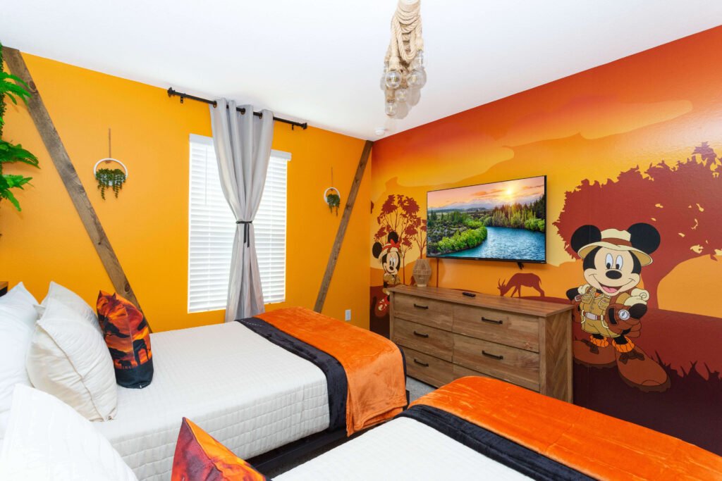 • Bedroom 3: One Full bed,1 single bed Safari Mickey theme and Smart Tv