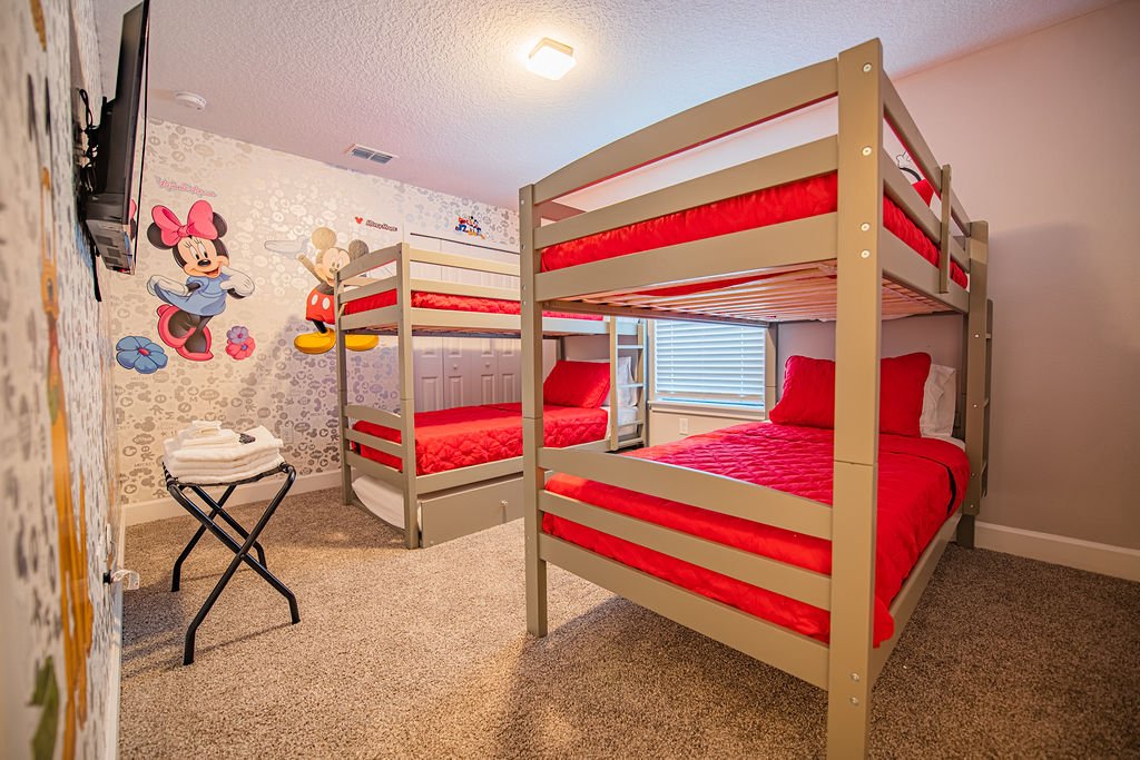 • Bedroom 4: Two Bunk Beds, one of them with an additional drawer in the bottom (twin side bed). Smart TV. “The Mickeys Room”