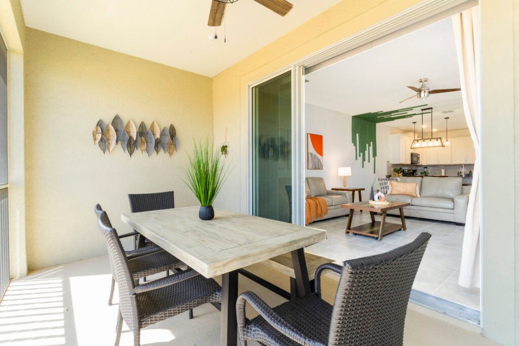 • Relaxing Balcony area with patio furniture.